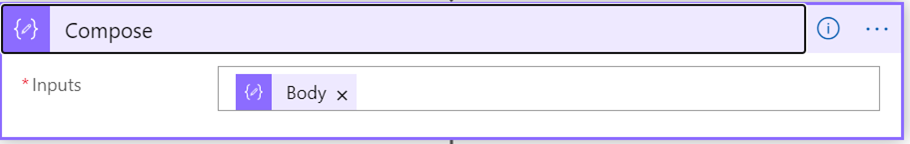 Once the Parse JSON action was configured, I discovered that I needed an additional step to aggregate the events into a single object before passing it to Event Hub. This action was the responsibility of the Compose action which only required a single argument of Body from the previous For Each.