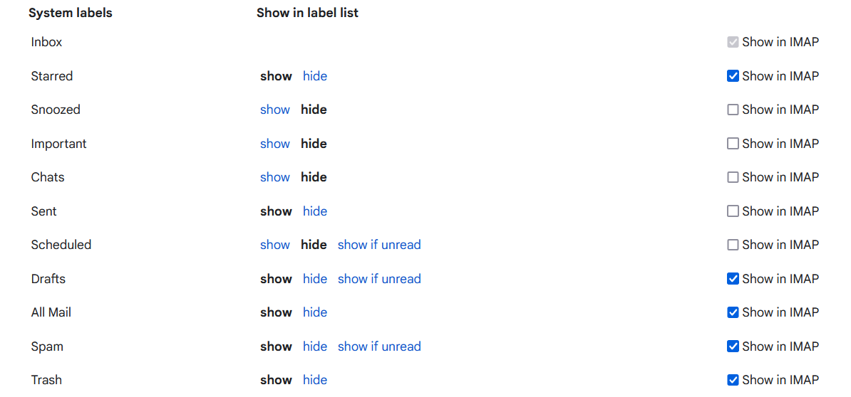 The issue I had with the solution was how Google implemented IMAP for their e-mail product. Through the support of various IMAP extensions, they were able to dynamically build IMAP folders from their special labels as well as labels that a user creates through the UI. For example, an excerpt of the system labels: